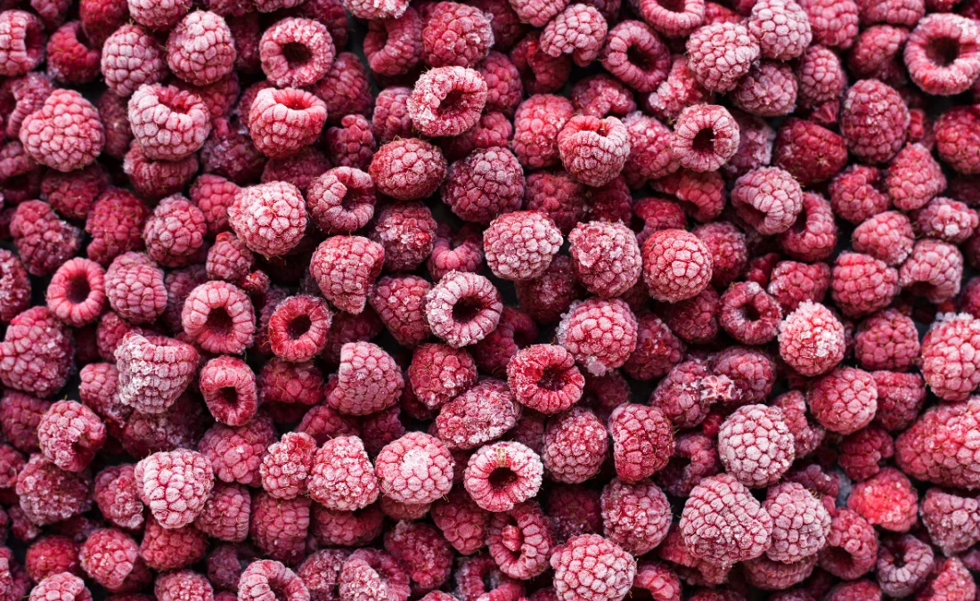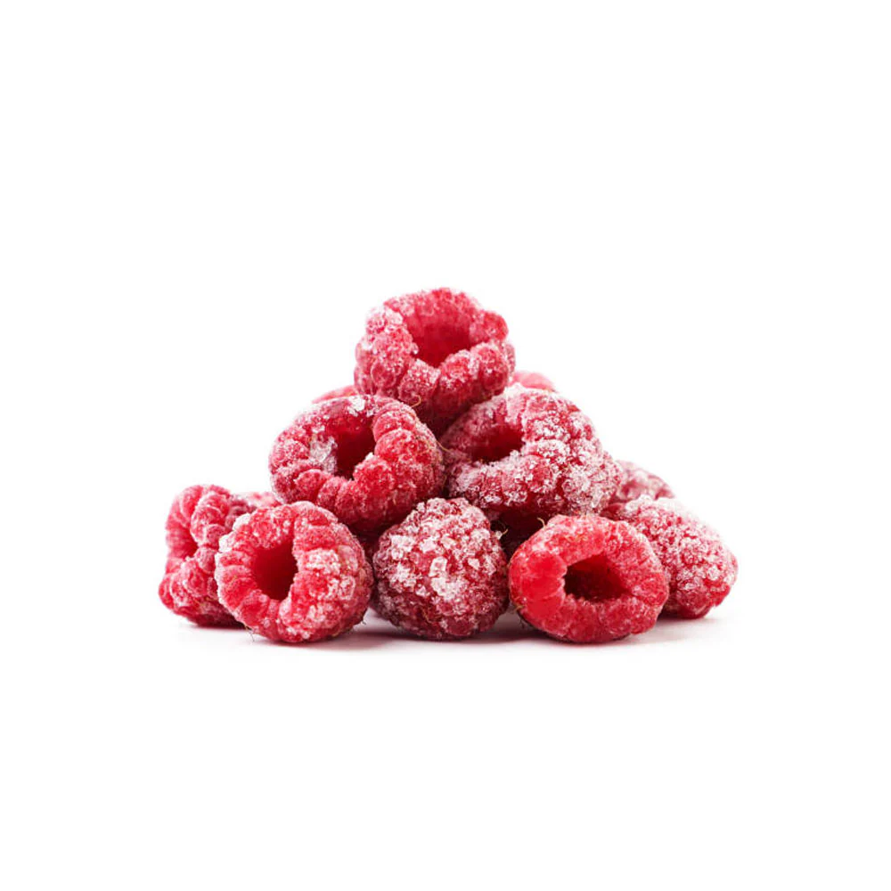 Découvrez nos framboises surgelées entières, soigneusement sélectionnées et surgelées juste après la récolte pour garantir leur goût naturel, leur couleur éclatante et leur texture ferme.